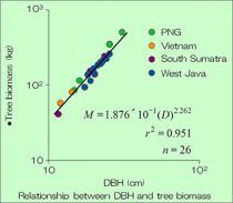 Results have already been obtained in estimating the carbon storage capacity of domestic forests in Japan and tropical rain forests abroad, and a methodology has been established for simple estimation of the biomass of plantations in tropical regions. Use of this knowledge enables estimation of the carbon storage capacity of forests.